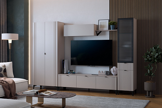 Гостиная "Рич К4" (2850х420х1900 мм) кашемир/фрапучино матовый/черный из каталога Модульные гостиные купить в Новосибирске в магазине мебели онлайн Мебельсон по цене 74 080 ₽