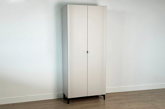 Корпус шкафа изготовлен из ЛДСП, что гарантирует прочность и долговечность. Фасад, покрытый МДФ в плёнке ПВХ, не только выглядит эстетично, но и защищает шкаф от повреждений. Особое внимание заслуживает фрезеровка фасадов, которая придаёт шкафу изысканный вид.
