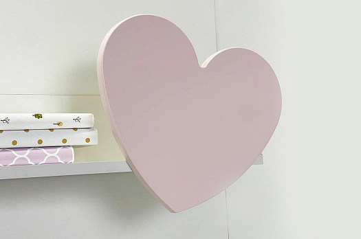- Материалы: ЛДСП в цвете белого дерева, декоративный элемент из МДФ в форме сердечка, покрытый розовой матовой эмалью