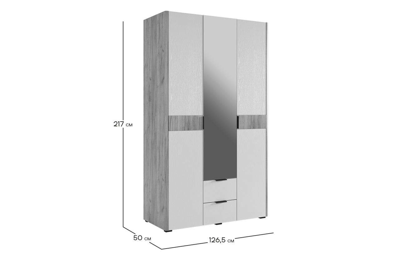 Адам Шкаф трехдверный (зеркало) дуб крафт золотой/белое дерево из каталога Шкафы купить в Новосибирске в магазине мебели онлайн Мебельсон по цене 44 405 ₽