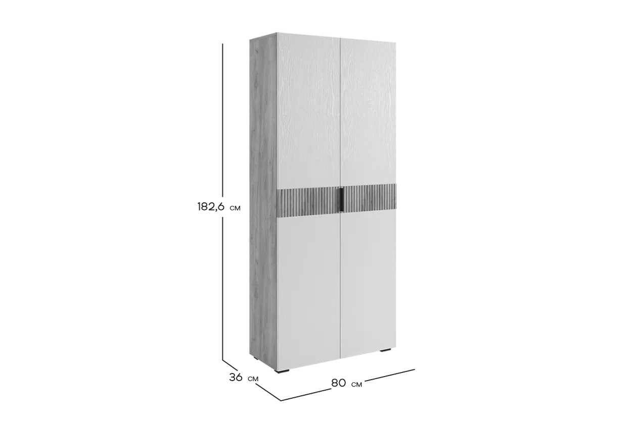Шкаф Бери предлагает отличное решение для аккуратного хранения вашего гардероба. Он идеально дополнит современный интерьер благодаря своему дизайну и функциональности. Внутри шкафа имеется вместительное отделение с выдвижной штангой для одежды на вешалках, несколько полок для сложенных вещей и антресольная ниша для сезонных вещей. Вставки на фасадах, выполненные с вертикальной фрезеровкой, делают эту модель по-настоящему уникальной.