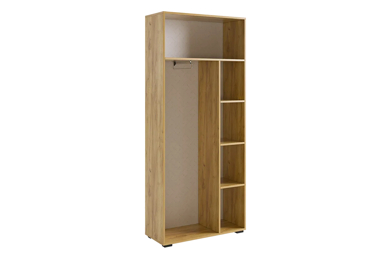Шкаф Бери предлагает отличное решение для аккуратного хранения вашего гардероба. Он идеально дополнит современный интерьер благодаря своему дизайну и функциональности. Внутри шкафа имеется вместительное отделение с выдвижной штангой для одежды на вешалках, несколько полок для сложенных вещей и антресольная ниша для сезонных вещей. Вставки на фасадах, выполненные с вертикальной фрезеровкой, делают эту модель по-настоящему уникальной.