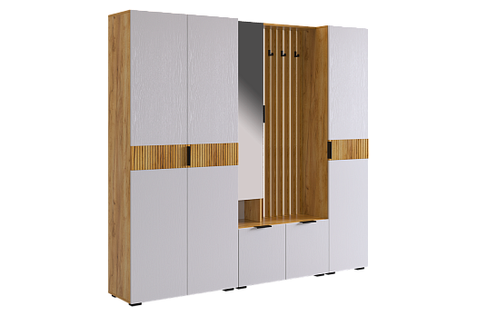 Прихожая "Бери К9" (2000х350х1826) дуб крафт золотой/белое дерево из каталога Модульные прихожие купить в Новосибирске в магазине мебели онлайн Мебельсон по цене 49 005 ₽