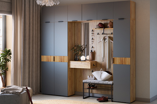 Принт, имитирующий вертикальную фрезеровку придает вешалке уникальный и современный вид, добавляя текстуру и глубину. Материал вешалки – ЛДСП, что обеспечивает прочность и долговечность, а также легкость в уходе.