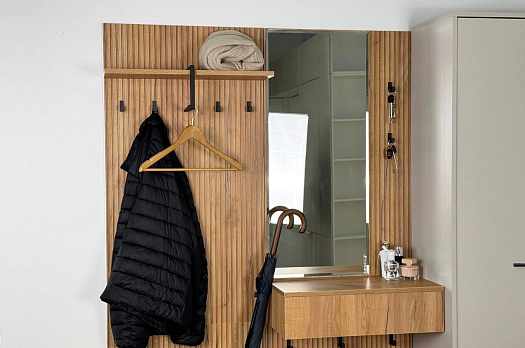 Крючки предоставляют удобное место для хранения верхней одежды, сумок или аксессуаров. Держатель для плечиков позволяет организовать хранение одежды, сохраняя ее в идеальном состоянии. Полка служит дополнительным пространством для хранения головных уборов.