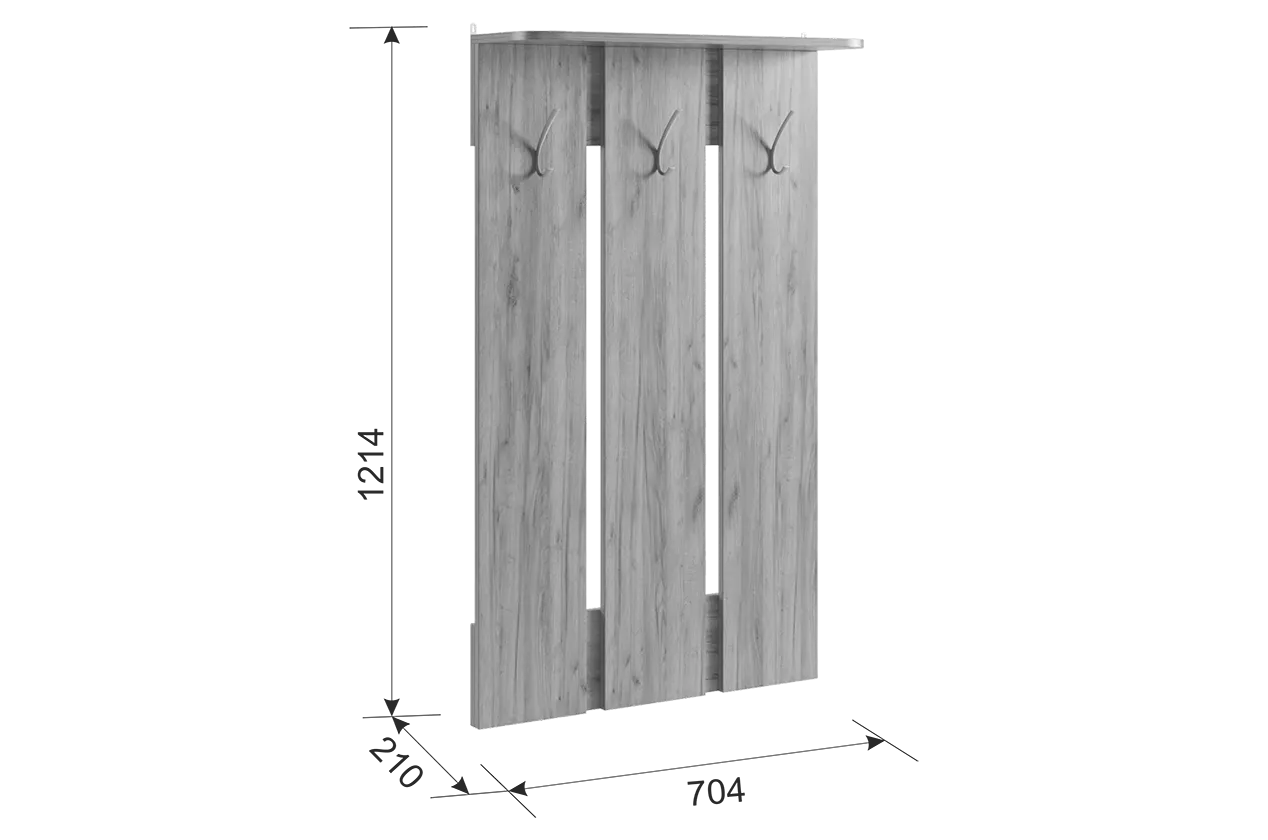 Вешалка Реал 1 - это прекрасное решение для малогабаритных пространств. Отсутствие избыточных деталей и симметричный дизайн делают ее универсальной и адаптируемой к любому интерьеру. На вешалке предусмотрены металлические крючки, которые идеально подойдут для размещения верхней одежды и сумок. Полка сверху предназначена для удобного хранения головных уборов.