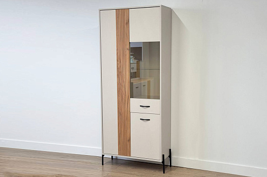 Доминика Шкаф двухдверный (со стеклом) кашемир/дуб крафт золотой из каталога Витрины купить в Новосибирске в магазине мебели онлайн Мебельсон по цене 21 830 ₽