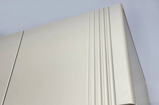 Особое внимание заслуживает фрезеровка фасадов, которая придаёт антресоли изысканный вид. Толкатели PUSH вместо ручек обеспечивают удобное открывание нажатием.