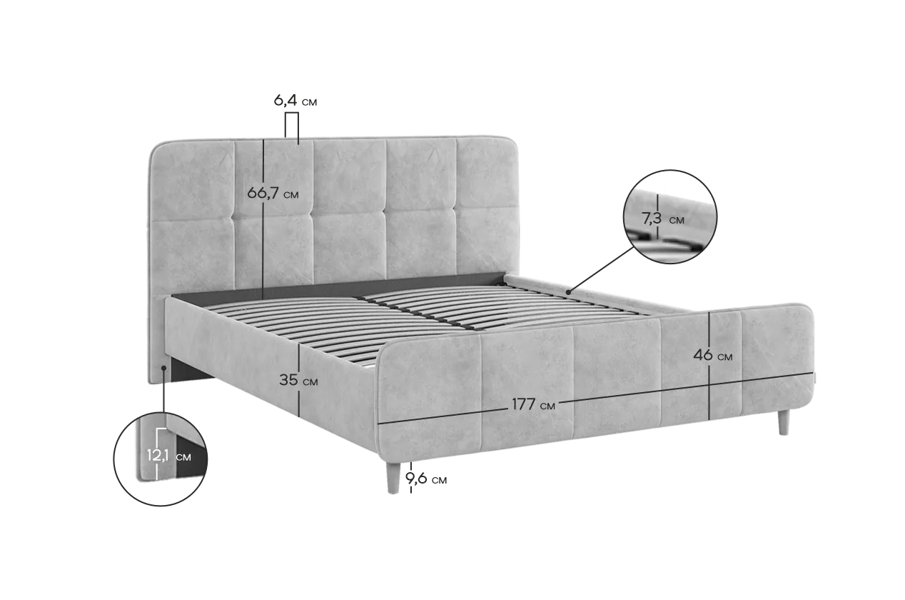 Кровать с основанием Грета 160х200 см грей алькантара (велюр) из каталога Двуспальные кровати купить в Новосибирске в магазине мебели онлайн Мебельсон по цене 34 535 ₽