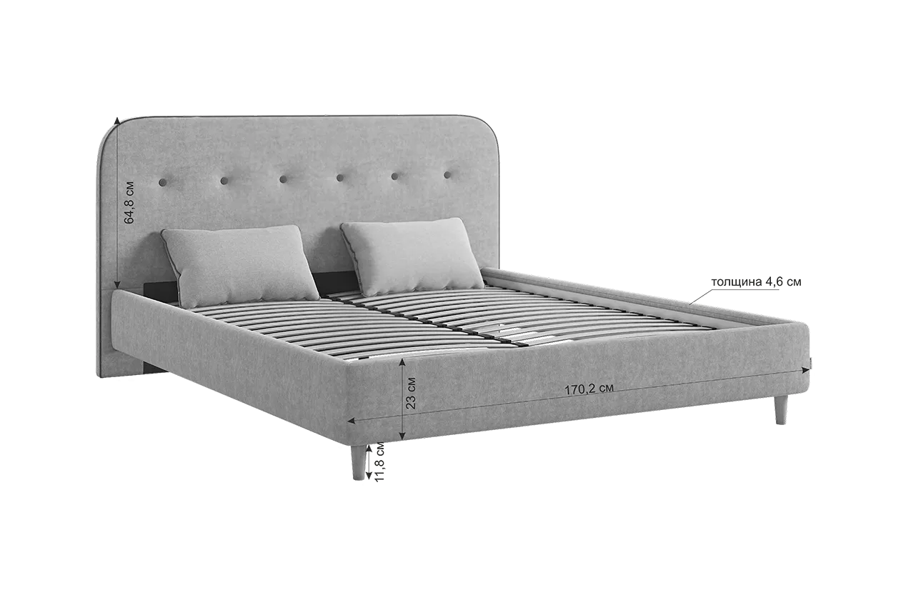 Чехол: Съемный у бортов и изножья. Надевается после сборки. Две декоративные подушки в подарок.