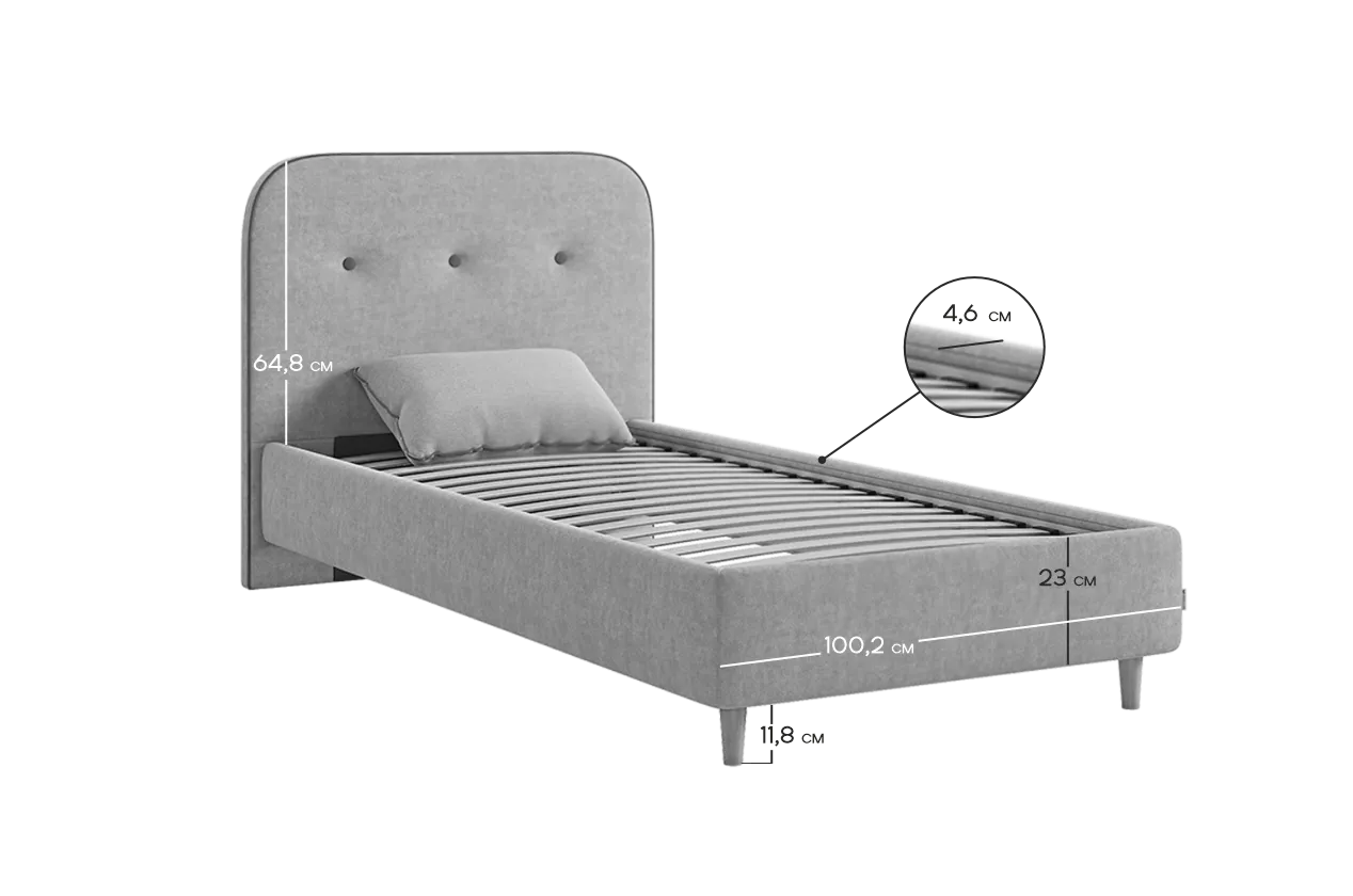 Кровать с основанием Лео 90х200 см графит (велюр)/галька (велюр) из каталога Детские кровати купить в Новосибирске в магазине мебели онлайн Мебельсон по цене 23 405 ₽