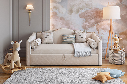 Кровать с подъемным механизмом Лея (Софа) 90х200 см крем (велюр)/латте (велюр) из каталога Детские кровати купить в Новосибирске в магазине мебели онлайн Мебельсон по цене 53 960 ₽