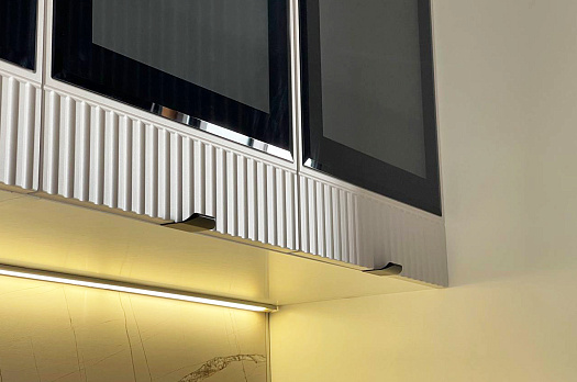 Кухонный гарнитур 2 "Бариста" (ширина 380х200 см) белый/милк матовый/графит матовый из каталога Модульные кухни купить в Новосибирске в магазине мебели онлайн Мебельсон по цене 169 070 ₽