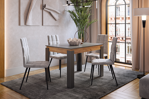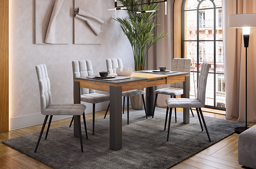 Стол обеденный раздвижной Гермес 2 графит/дуб крафт золотой из каталога Обеденные столы купить в Новосибирске в магазине мебели онлайн Мебельсон по цене 12 590 ₽