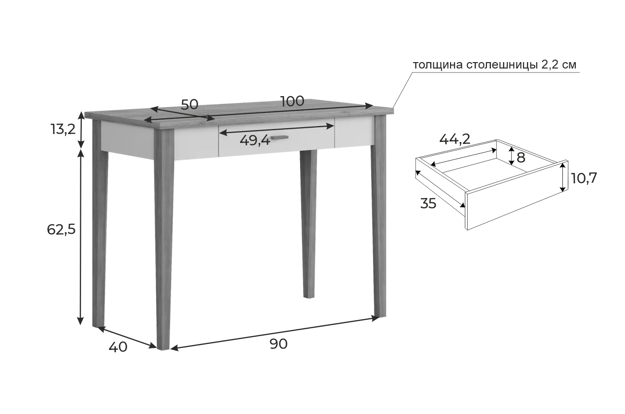 • Толщина столешницы: 22 мм